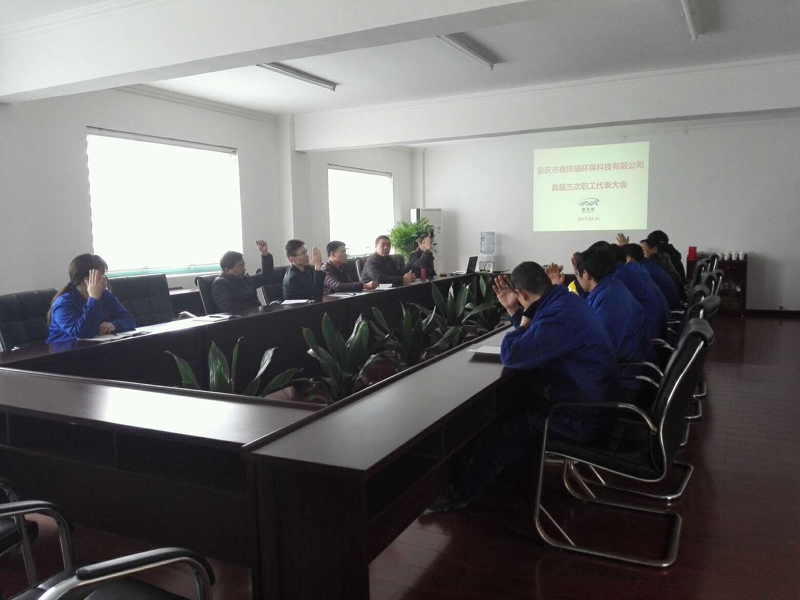 為加強企業(yè)民主管理,構(gòu)建和諧穩(wěn)定的勞動關系,增強企業(yè)向心力、凝聚力,3月31日下午,安慶市鑫祥瑞環(huán)保科技有限公司成功組織召開了首屆三次職工代表大會。會議由職代會副主任陳合主持,公司領導姚喜軍、王龍江列席會議。會議以表決的形式增補高豹、張慶為職工代表,審議并通過了《安慶市鑫祥瑞環(huán)??萍加邢薰締T工手冊(修訂版)》、《安慶市鑫祥瑞環(huán)??萍加邢薰拘匠曛贫龋ㄐ抻啺妫?,完成了全部會議議程。會上,公司副總經(jīng)理王龍江對薪酬制度修訂稿做了詳細講解,強調(diào)了本次薪酬制度的最大變化是對員工職業(yè)發(fā)展“雙通道”的設計,為員工職業(yè)生涯量身定制發(fā)展路徑。此次職代會在和諧融洽的氛圍中圓滿結(jié)束。